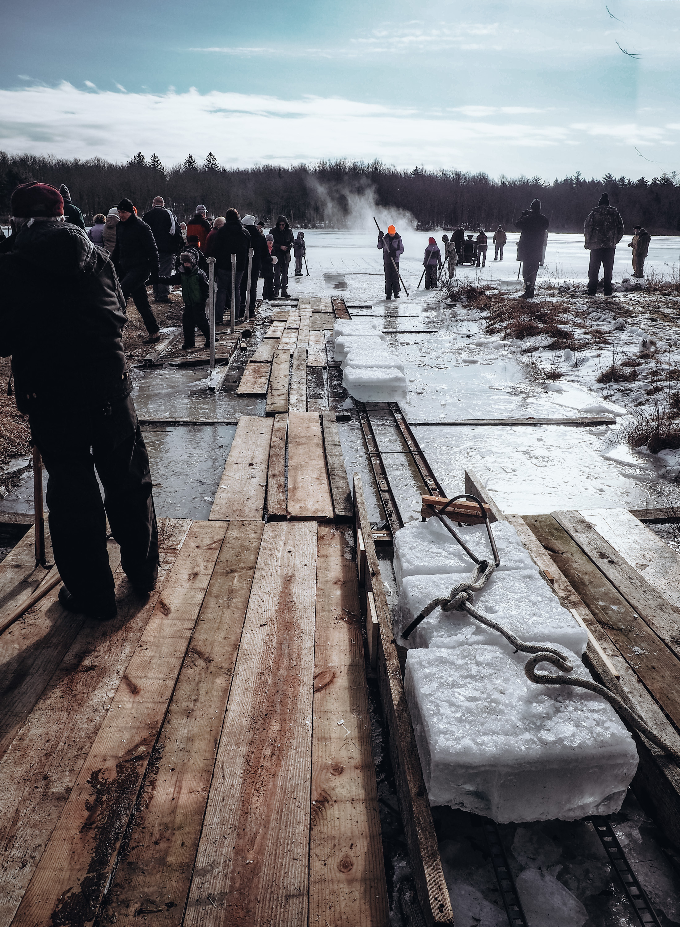 This free, family-friendly living history event invites visitors of all ages to experience how ice was harvested a century ago. Guests may help cut and move ice, stack ice cakes in the icehouse, or simply watch the reenactment.